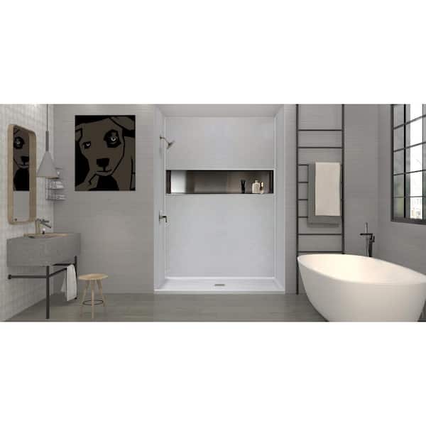 Linear 36 in. L x 48 in. W Alcove Shower Pan Base with Center Drain in Grey
