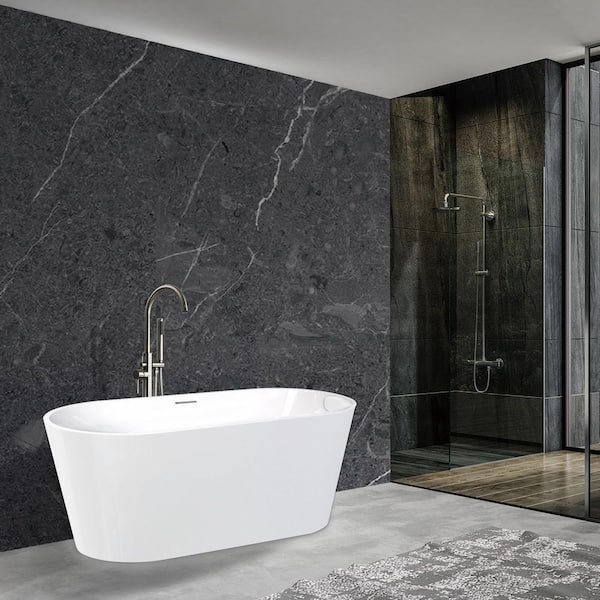 Maris 59 in. x 31.125 in. Soaking Bathtub with Center Drain in Gloss White/Brushed Nickel with Faucet and Pillow