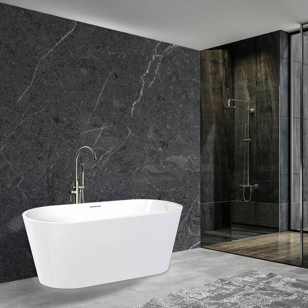 Maris Grande 67 in. x 31.125 in. Soaking Bathtub with Center Drain in Gloss White/Brushed Nickel with Faucet and Pillow