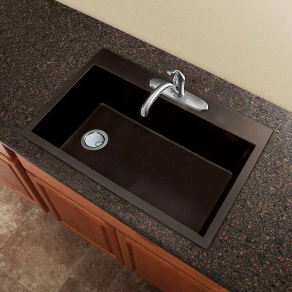 Radius All-in-One Drop-in Granite 33 in. 1-Hole Single Bowl Kitchen Sink in Espresso