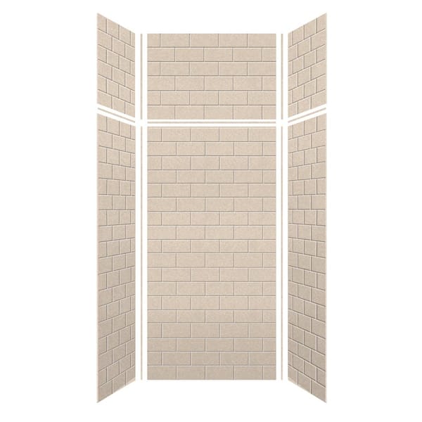 Saramar 36 in. W x 96 in. H x 36 in. D 6-Piece Glue to Wall Alcove Shower Wall Kit with Extension in Cashew