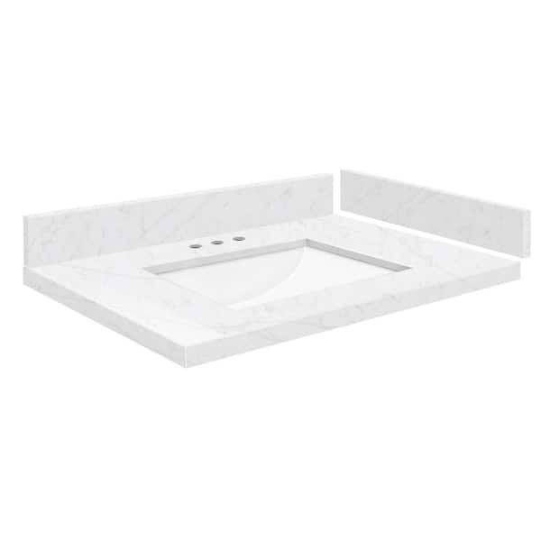 Silestone 28 in. W x 22.25 in. D Quartz White Rectangular Single Sink Vanity Top in Statuario