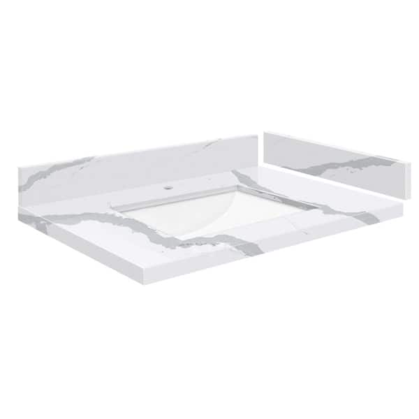 Silestone 30.5 in. W x 22.25 in. D Quartz White Rectangular Single Sink Vanity Top in Bianco Calacatta