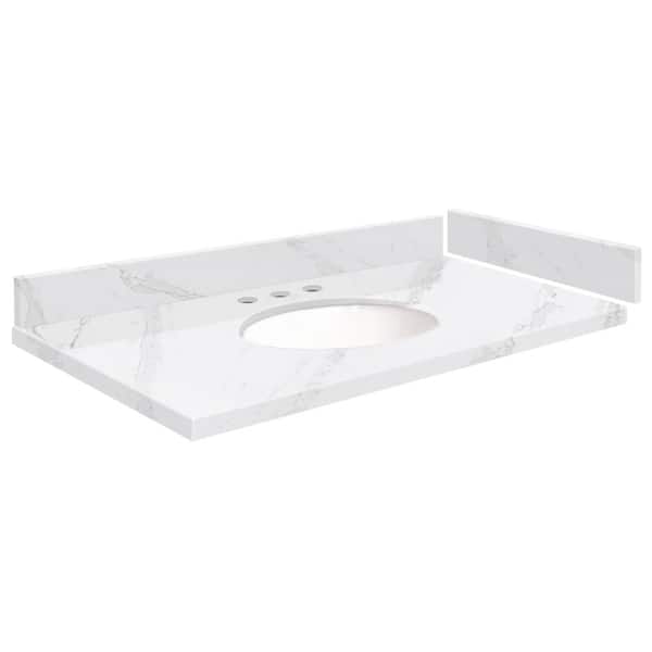 Silestone 34.5 in. W x 22.25 in. D Quartz White Round Single Sink Vanity Top in Calacatta Gold