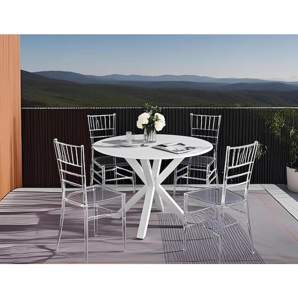 Transparent Plastic Welding Chair Outdoor Dining Chair (Set of 4)