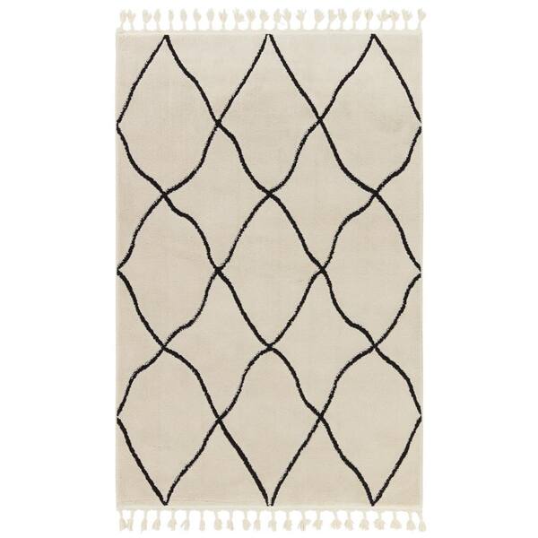 Treble Ivory/Black 10 ft. x 14 ft. Trellis Polypropylene Rectangle Area Rug