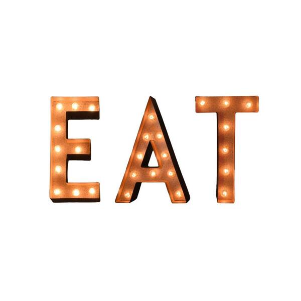 22 in. W x 12 in. H Small Rusted EAT Plug-In Marquee Lights