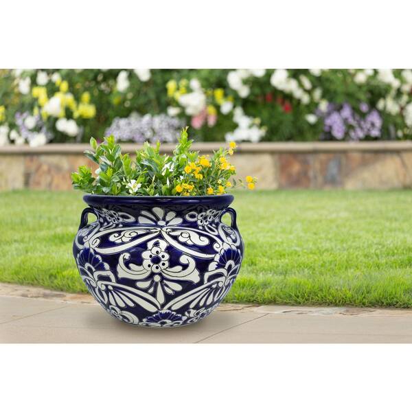 16 in. Dia Blue and White Talavera Chata Planter