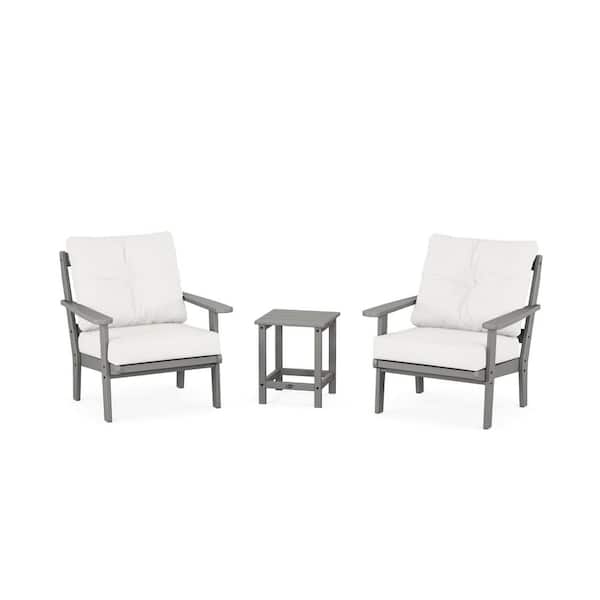 Cape Cod Stepping Stone 3-Piece Plastic Patio Conversation Set in Natural Linen Cushions