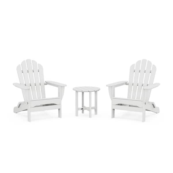 Monterey Bay 3-Piece Plastic Patio Conversation Set in Classic White Folding Adirondack
