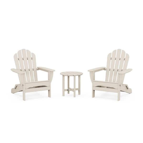 Monterey Bay 3-Piece Plastic Patio Conversation Set in Sand Castle Folding Adirondack