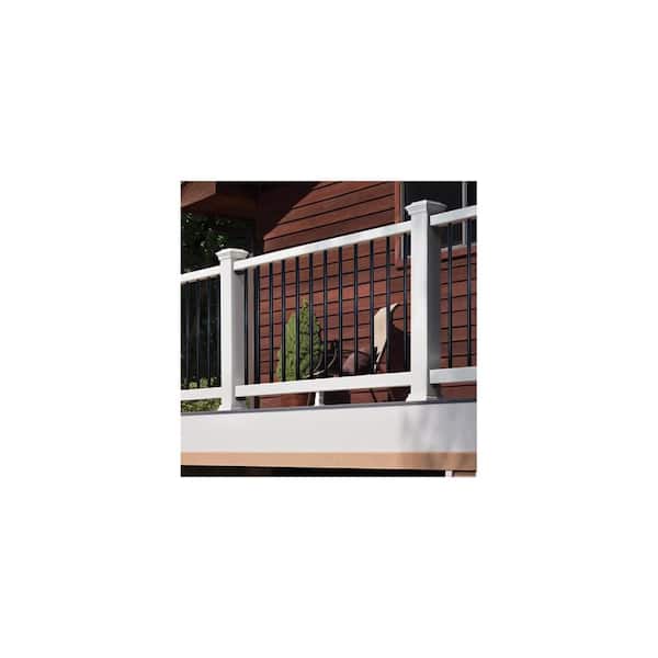 • 6 ft. Horizontal White with Aluminum Round Black Balusters