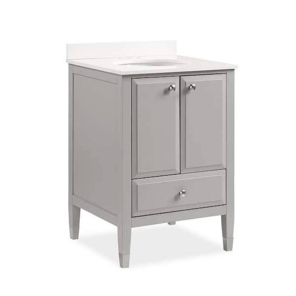 Tricia 24 in. Bathroom Vanity in Gray w/Composite Granite Vanity Top in White w/White Ceramic Oval Sink and Backsplash