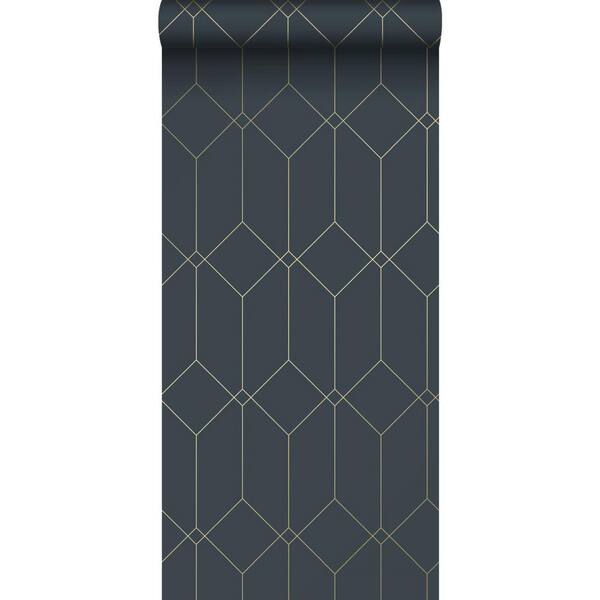 Trilliant Dark Blue Art Deco Motif Paper Non-Pasted Non-Woven Metallic Wallpaper
