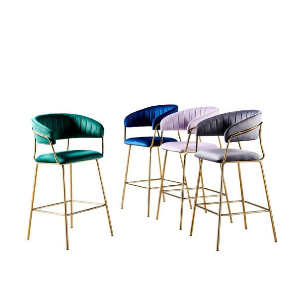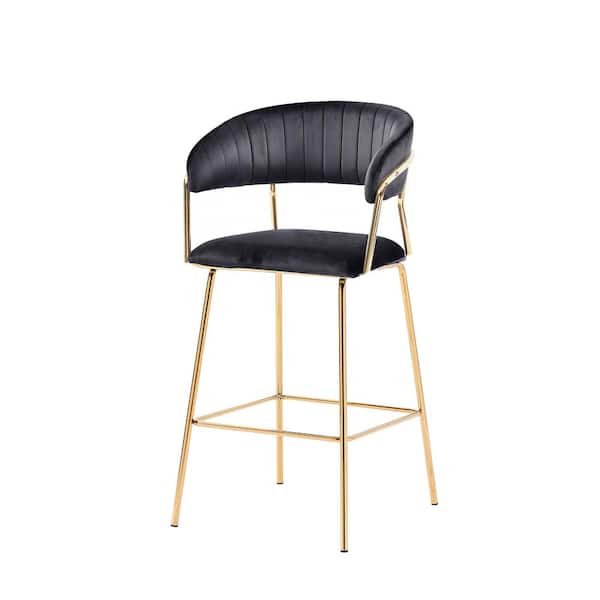 Tristan 29 in. H Gold Plated with Black Velour Bar Chairs (Set of 2)