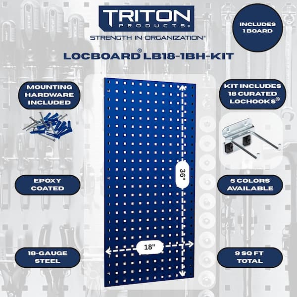 18 in. W x 36 in. H Blue Steel Square Hole Pegboard with LocHook Assortment (18-Pieces)