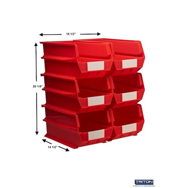 LocBin 14-3/4 in. L x 8-1/4 in. W x 7 in. H Red Stacking, Hanging, Interlocking Polypropylene Bins, 6 CT