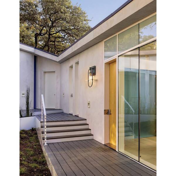 Smyth 1-Light Dark Bronze 14 in. H Outdoor Wall Lantern Sconce with Clear Glass