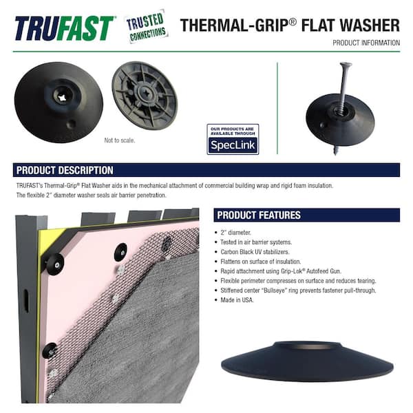 2 in. Thermal-Grip Flat Building Wrap Insulation Fastener Washer 250 EA Black