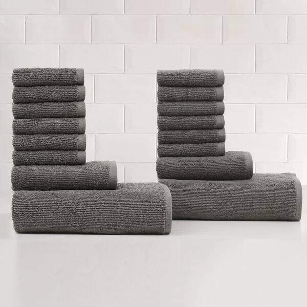 Essential Textured Grey 16-Piece Cotton Towel Set