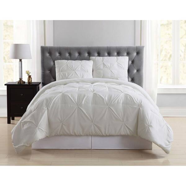 Everyday Pleated 4 Piece Full/Queen Removeable Cover Microfiber Comforter Set in Ivory
