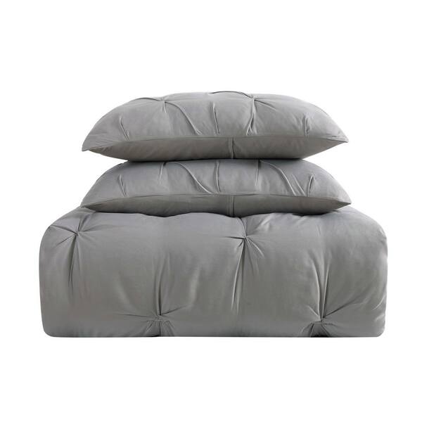 Everyday Pleated 4-Piece King Removeable Cover Microfiber Comforter Set in Grey