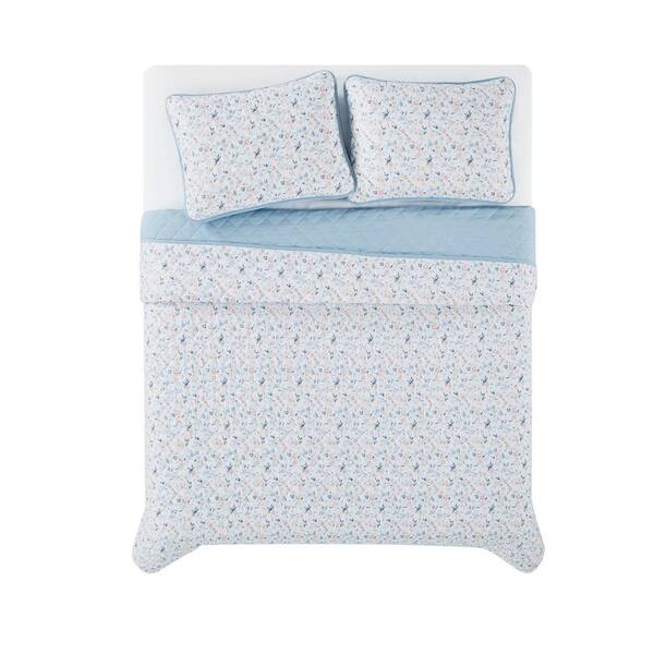 Maine Floral King 3 Piece Mulitcolor Microfiber Quilt Set