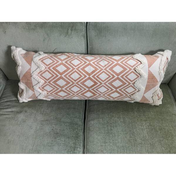 Tufted Burnt Orange / Cream 36 in. x 14 in. Geometric Cotton Standard Indoor Throw Pillow