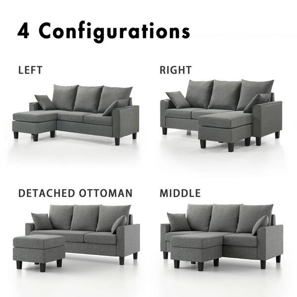 Tully 74 in. Straight Arm 1-Piece Polyester L-Shaped Sectional Sofa in Gray with Chaise