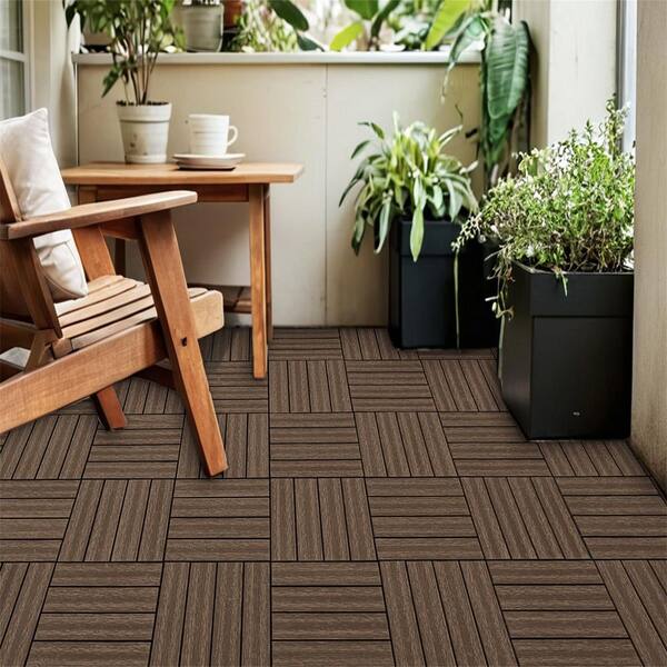 11.8 in. x 11.8 in. Outdoor Patio Interlocking Wood Plastic Composite Deck Floor Tiles, Light Coffee 20-Pieces