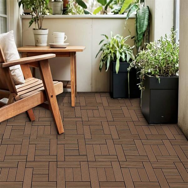 11.8 in. x 11.8 in. Outdoor Patio Wood Plastic Composite Waterproof Floor Tile 20-Pieces, Light Coffee
