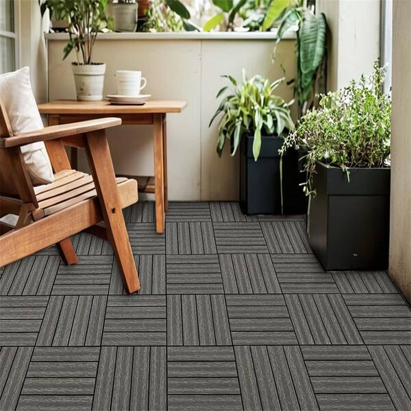 11.8 in. x11.8 in. Outdoor Patio Interlocking Wood Plastic Composite Deck Floor Tiles,Dark Gray Stripe Pattern 20-Pieces