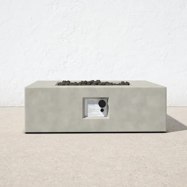 12 in H x 34 in W Concrete Outdoor Propane Stainless Steel Push Button Fire Pit Table, Square, Natural Concrete, White