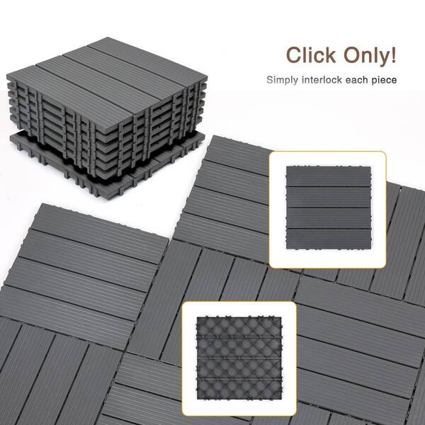 12 in. X 12 in. Outdoor Patio Pool Gray Stripe Pattern Plastic Interlocking Floor Tile, 44 Pieces
