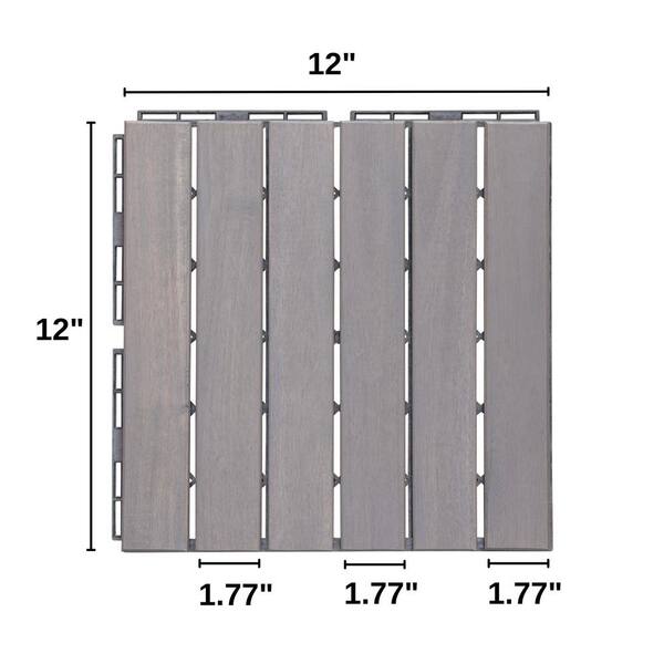 12 in. x 12 in. Striped Pattern Square Wood Interlocking Gray Flooring Tiles for Deck Patio Poolside (10 Tiles)