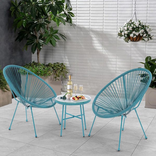 3-Piece Outdoor Small Living Room Patio Talking Blue PE Rattan Chair Set Set with Coffee Table