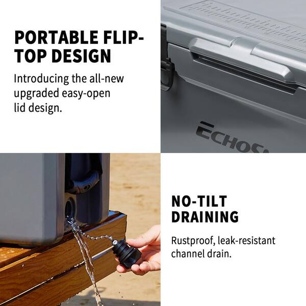 35 qt. Outdoor Gray Insulated Box Cooler with Stretch Lock, Non-Slip Rubber Mat and 4 Handles