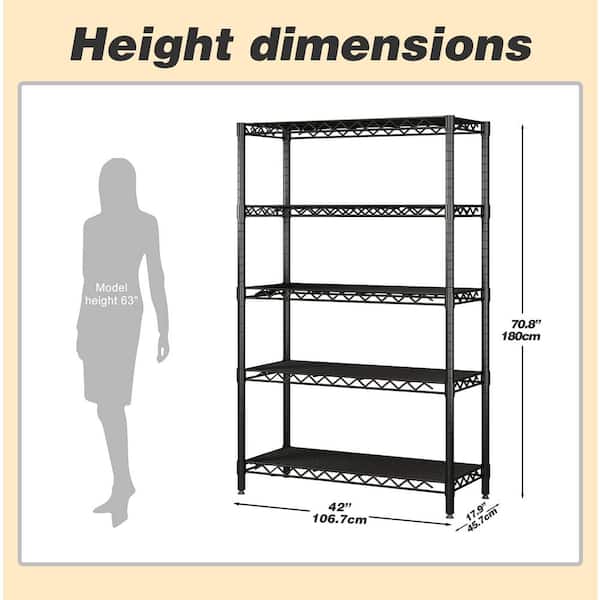 4-Tier Wire Shelving Metal Storage Rack Adjustable Shelves, Standing Storage Shelf Units(Black, 42L x 17. 99W x 71H)