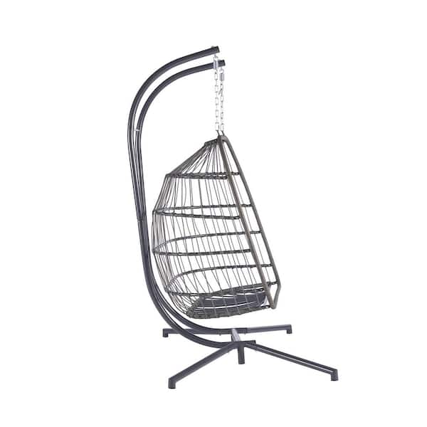 60 x 37.8 x 77.4 in. Wicker Outdoor Rocking Chair with Dark Blue Cushion, Swing Hanging Chair, Suspended