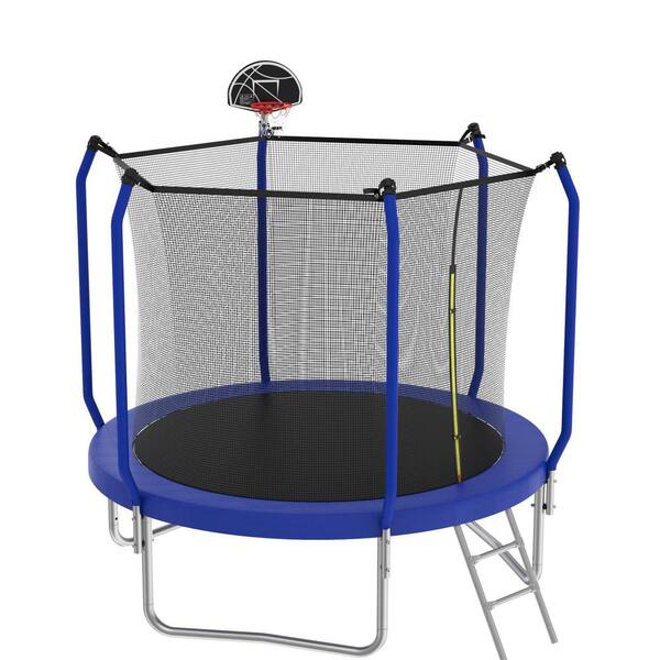 Basketball Hoop Equipped 10 ft. ASTM Approved Reinforced Type Safe Recreational Outdoor Trampoline Kit with Enclosure