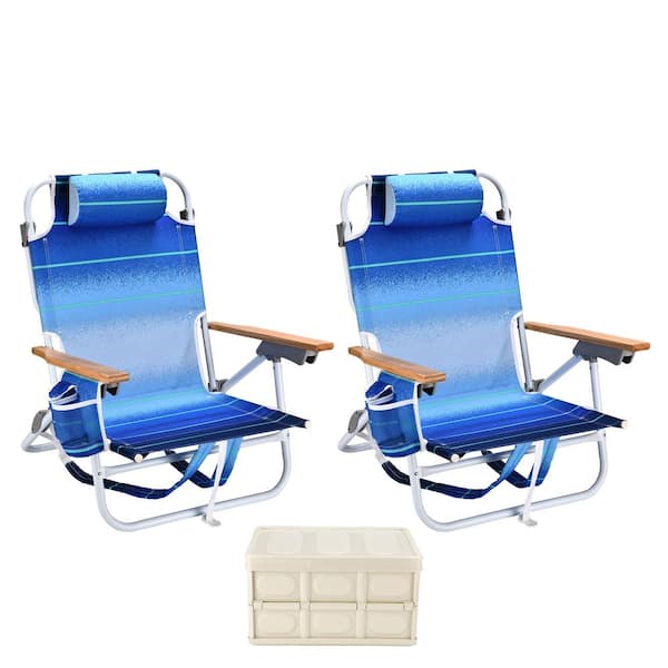 Outdoor Beach Aluminum 2-Piece Foldable Backpack Adult Beach Chair with Beach Towel and 1 White Storage Case