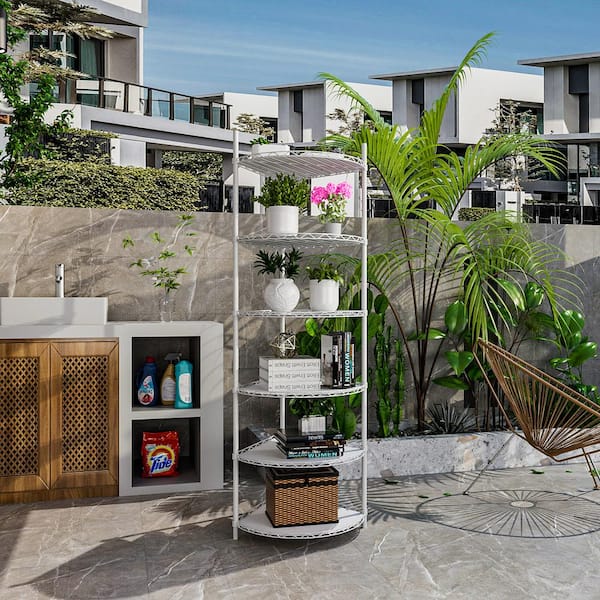 Plant Stand Metal White Wire Shelving Unit with Wheels Liners (6-Tier)