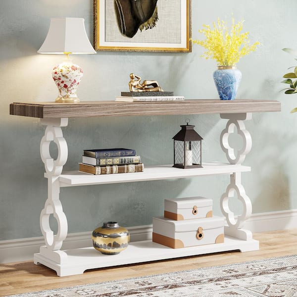 Turrella 56 in. Gray Rectangle Wood Console Table Farmhouse, Entryway Sofa Entry Table with 3 Tier Storage Shelves