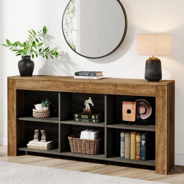 Turrella 62.9 in. Brown Rectangle Engineered Wood Console Table with Storage Shelves
