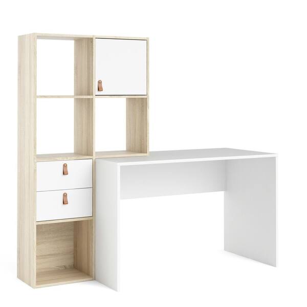 Winston 62.99 in. Rectangular White/Oak Structure Engineered Wood 1-Door, 2-Drawer Writing Desk with 4-Shelves