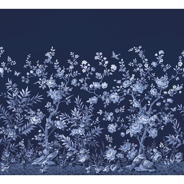 Twilight Chinoiserie Blue Midnight Blue Flowers Wall Mural