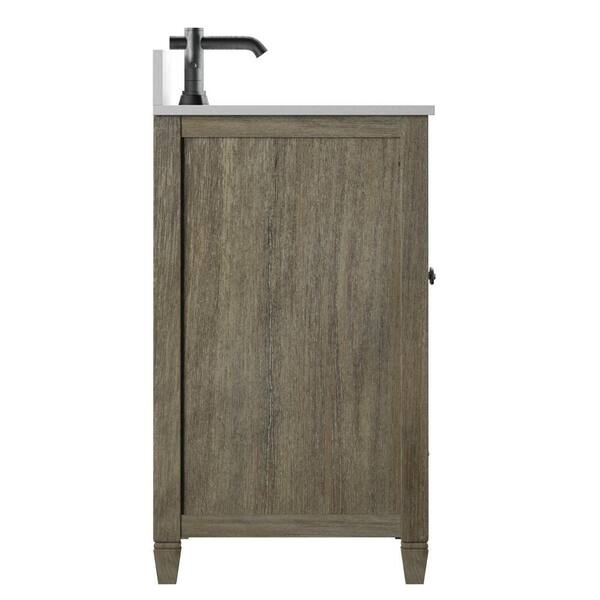 30 in. Bath Vanity Rattan Doors in Randolf Oak with Stone Vanity Top in White and White Basin