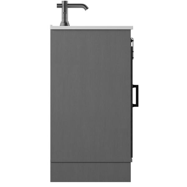 36 in. x 18.13 in. D Bath Vanity in Antique Gray with Vitreous China Vanity Top in White with White Basin and Barn Door