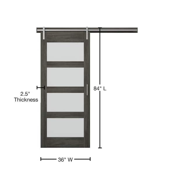 36 in. x 84 in. 4 Lite Full Frosted Glass Crete Oak MDF Sliding Barn Door with Hardware Kit