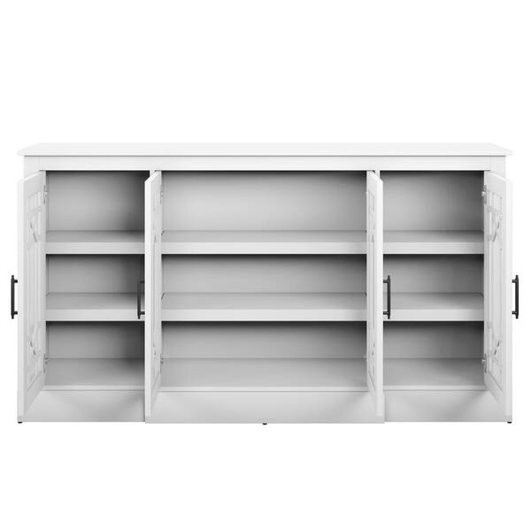 Brilliant White MDF 64 in. Buffet Sideboard with Decorative Glass Cabinet Doors